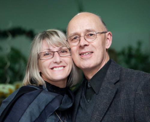 с жена, която също