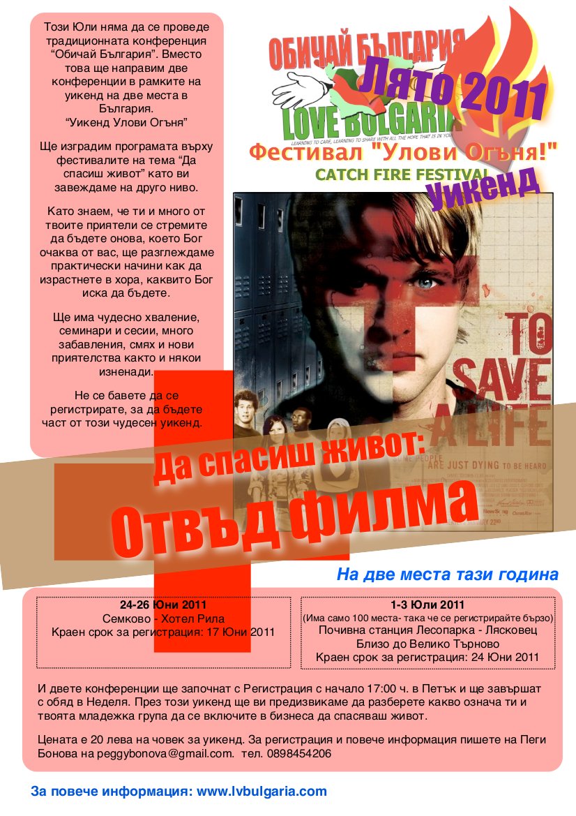 Ще изградим програмата върху фестивалите на тема “Да спасиш живот” като ви завеждаме на друго ниво. Като знаем, че ти и много от твоите приятели се стремите да бъдете онова, което Бог очаква от вас, ще разглеждаме практически начини как да израснете в хора, каквито Бог иска да бъдете. Ще има чудесно хваление, семинари и сесии, много забавления, смях и нови приятелства както и някои изненади.