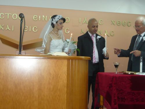 И така, дойде желаният ден – 30.03.2010г. Динко и Таня сключиха граждански брак! Имаше малко тържество и на следващия ден отпътувахме за остров Ксиос. Имахме 24 дни за организация на сватбеното тържество. Пастирът ни, Такис Вастианос, беше се ангажирал с частта, свързана с църквата. Това беше добре, но имаше и много други подробности. Имахме отново голямата нужда от Бог и Той не се забави с помощта си. На 25.04.2010г. започна нашият общ благословен живот. Сключихме църковен брак, след това имаше и сватбено тържество. Бог ни показа и кое семейство да ни бъдат свидетели по време на ритуала – пасторът ни със съпругата си. Хора, които знаеха, че всичко, което се случва, е в съгласие с Божията воля. Хора, които ни благословиха не с какво да е, а с “благословението на Авраам да бъде над вас!” След църковният брак, на път за ресторанта, Бог даде видение на майката на Таня, която независимо от това, че Бог и беше отговорил на поставените знаци, все още имаше известни съмнения за това, дали е Божия воля. Припомни и за обещанията, които и беше обещал относно това, кой ще бъде съпругът на Таня. После погледна в морето и видя нещо “неописуемо красиво” по нейните думи – заря от фойерверки посред бял ден. Никой от околните не бе видял това. Видението освободи баба ми да се радва и празнува с увереност, че Бог е в основата на брака на нейната дъщеря.